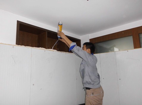 在拼裝每一塊冷庫板,都不可忽視細節(jié),必須打上發(fā)泡劑;
